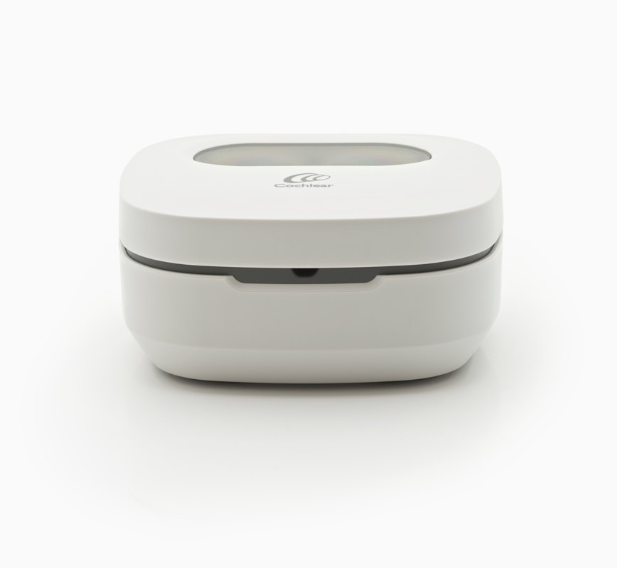 Cochlear™ Home Charger både lader og tørker din Kanso lydprosessor samtidig.